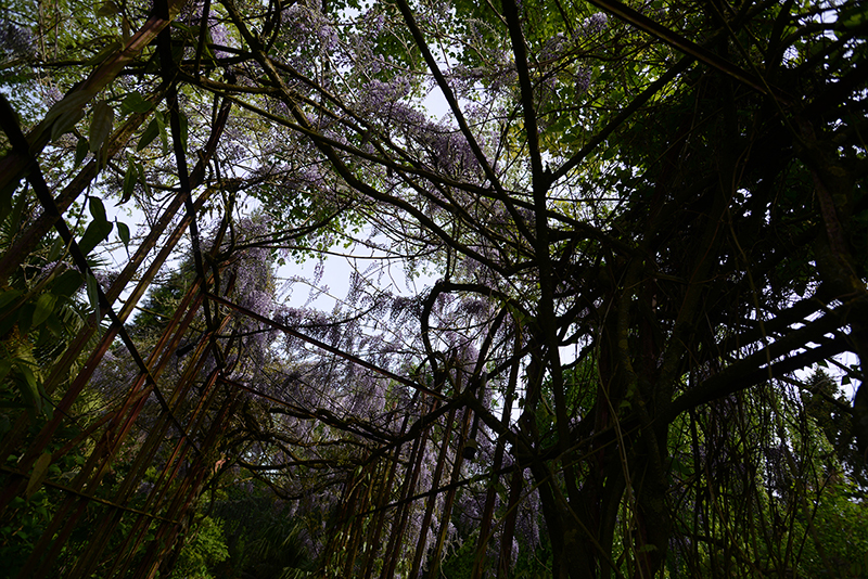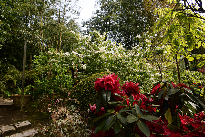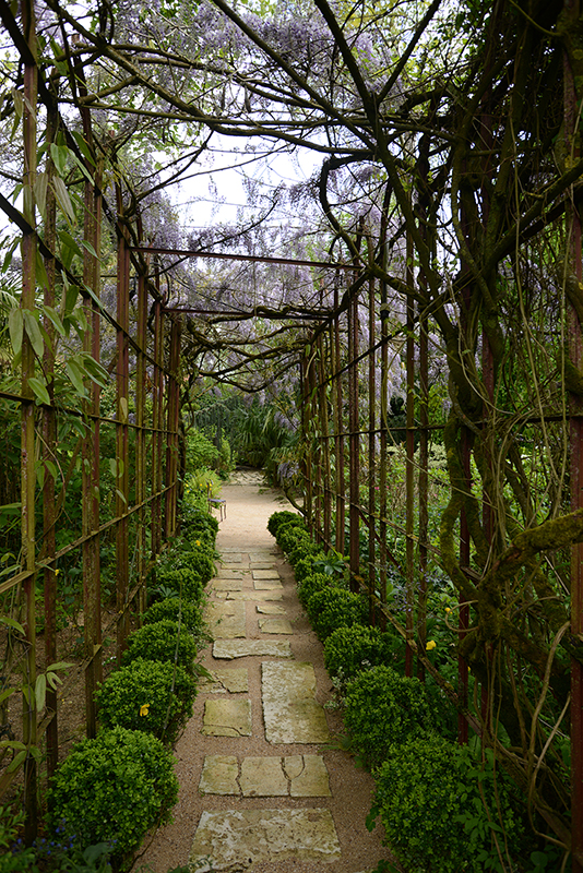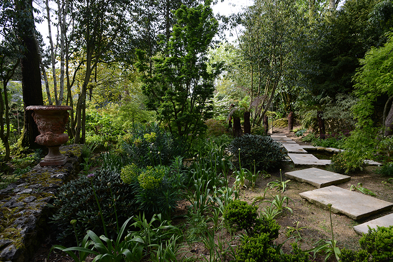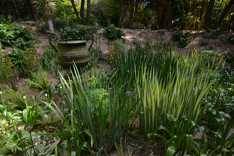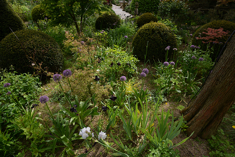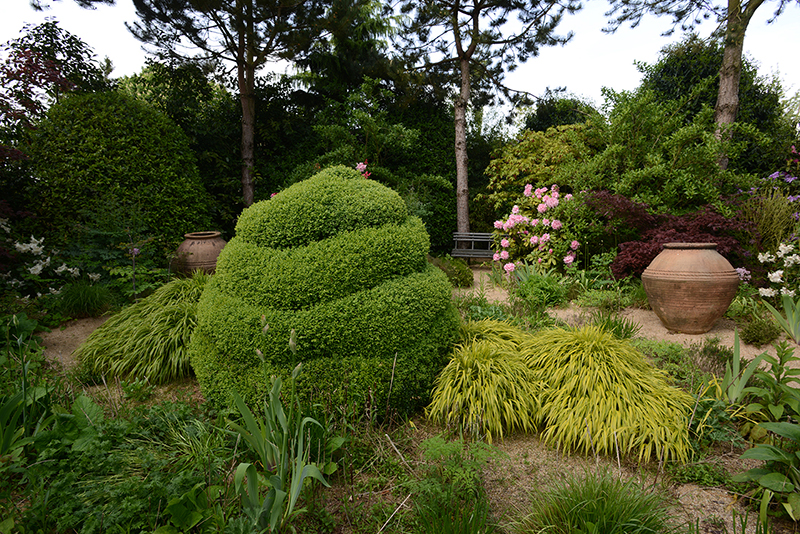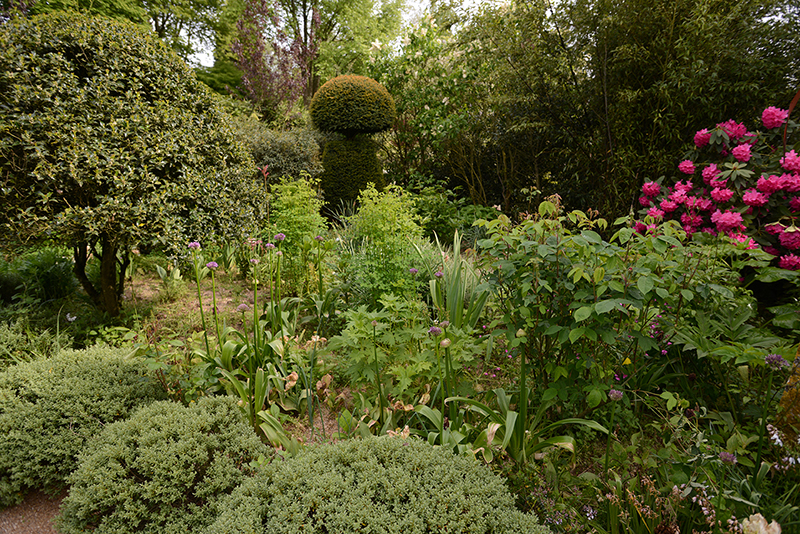 Alexandre aurait pu se contenter de ce jardin-ci mais, en 2006, il a voulu ce jardin-là, de l’autre côté de la route. Le jardin de la maturité. Celui dans lequel on entre par une belle grille, “coiffée” de glycines blanches. Ce jardin, Alexandre l’a réalisé en deux ans seulement. La pièce maîtresse, l’amphithéâtre végétal, a nécessité l’évacuation de nombreuses pierres, l’apport de très importantes quantités de terre et la plantation d’arbres, de conifères déjà adultes.