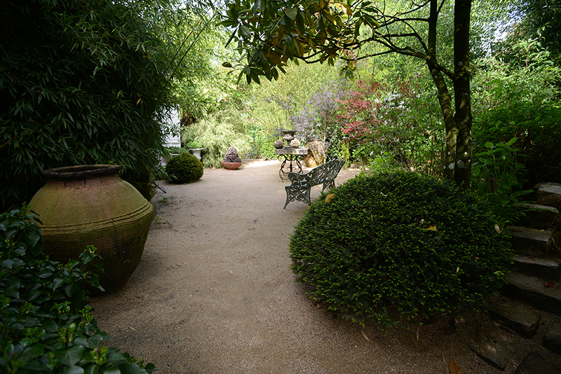 Dans ces deux jardins très différents, le trait commun se nomme foisonnement. Alexandre ne plante jamais à l’économie, il aime trop les arbres, les fleurs et les animaux (on en croise partout !) Il aime qu’on se perde sur ses chemins de sable de rivière (si doux sous les pieds et si facile à désherber…), il aime qu’on prenne son temps sur les chaises et les bancs qui peuplent les jardins et incitent à s’asseoir pour mieux les déguster, en profiter. Et si vous preniez le temps de savourer leur générosité ?