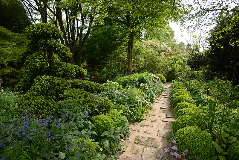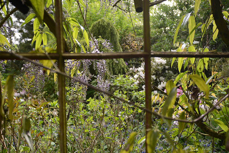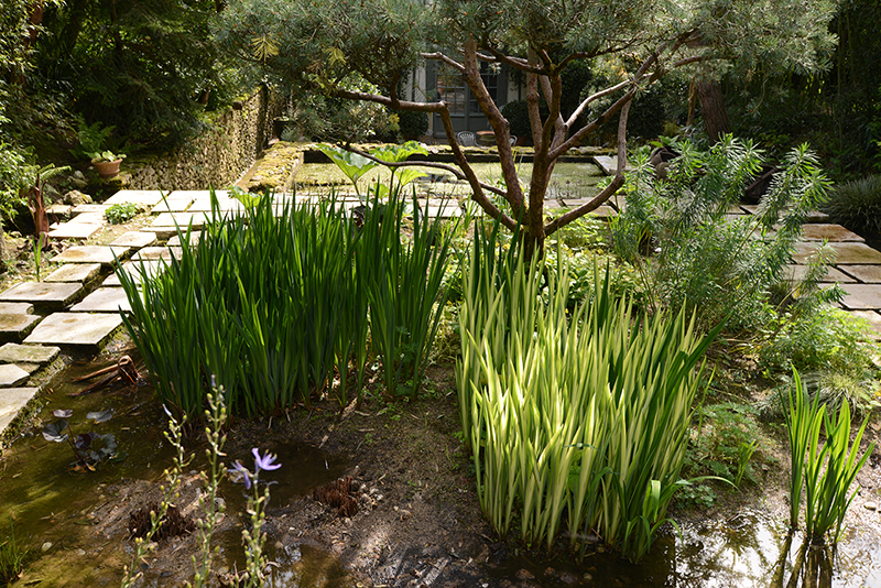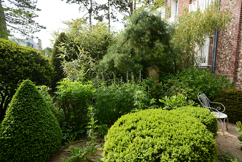 Sa passion pour les jardins (et le jardinage) remonte à ses plus jeunes années. De ses plaisirs d’enfants, Alexandre en a fait un métier dans lequel il excelle. Il conçoit des jardins en France et à l’étranger et il ne peut avoir de plus belle “vitrine” que celle de ses deux jardins à lui. Le premier, celui de ses parents, il l’a façonné, planté, modelé dès sa sortie de l’école de Gembloux (qui forme les architectes paysagistes) dans les années 1980. Des sentiers où l’on perd ses repères, une glycine majestueuse sur sa structure en métal, des boules d’agapanthes en pagaille, des petits buis tout dodus, des bambous qui nous emmènent ailleurs et révèlent leurs jolies “gambettes” quand Alexandre coupe les feuilles les plus basses pour apporter de la lumière ici et là…