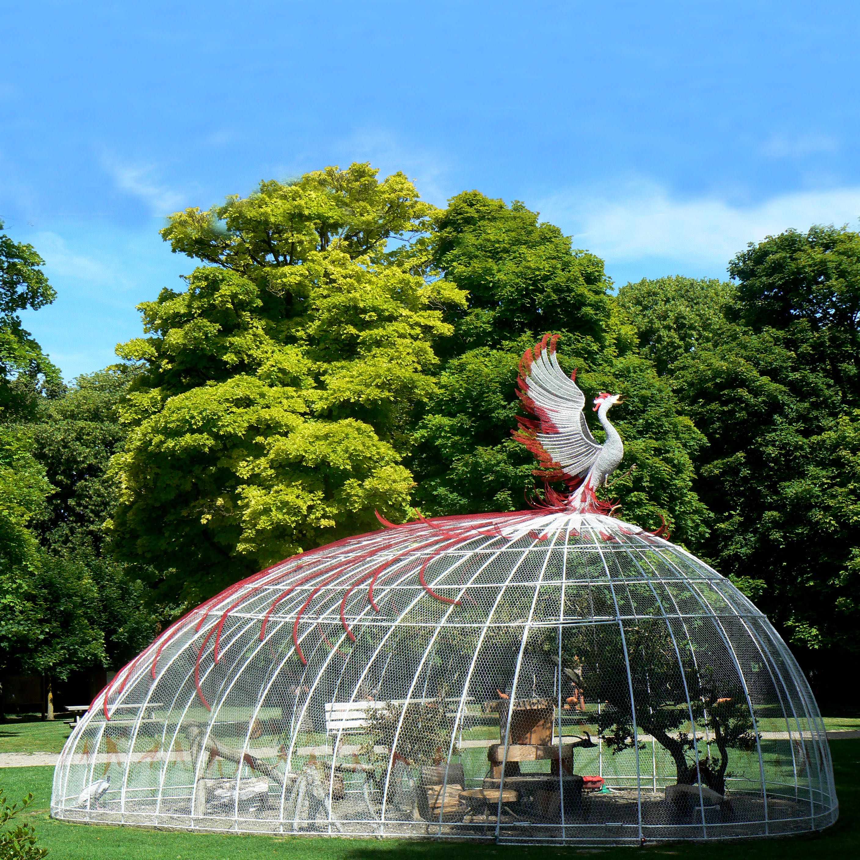 Vous pouvez voir plusieurs oeuvres d’art de Claude Pasquer dans La Forêt enchantée, l’un des 14 jardins du château du Rivau, en Touraine. Un dragon en fer forgé marque l’ouverture du jardin qui s’ouvre sur le monde magique des lutins, sculptures de grillage cachées parmi les végétaux. Claude est également le créateur du Phoenix, une magnifique volière qui signe la sortie du labyrinthe d’Alice.