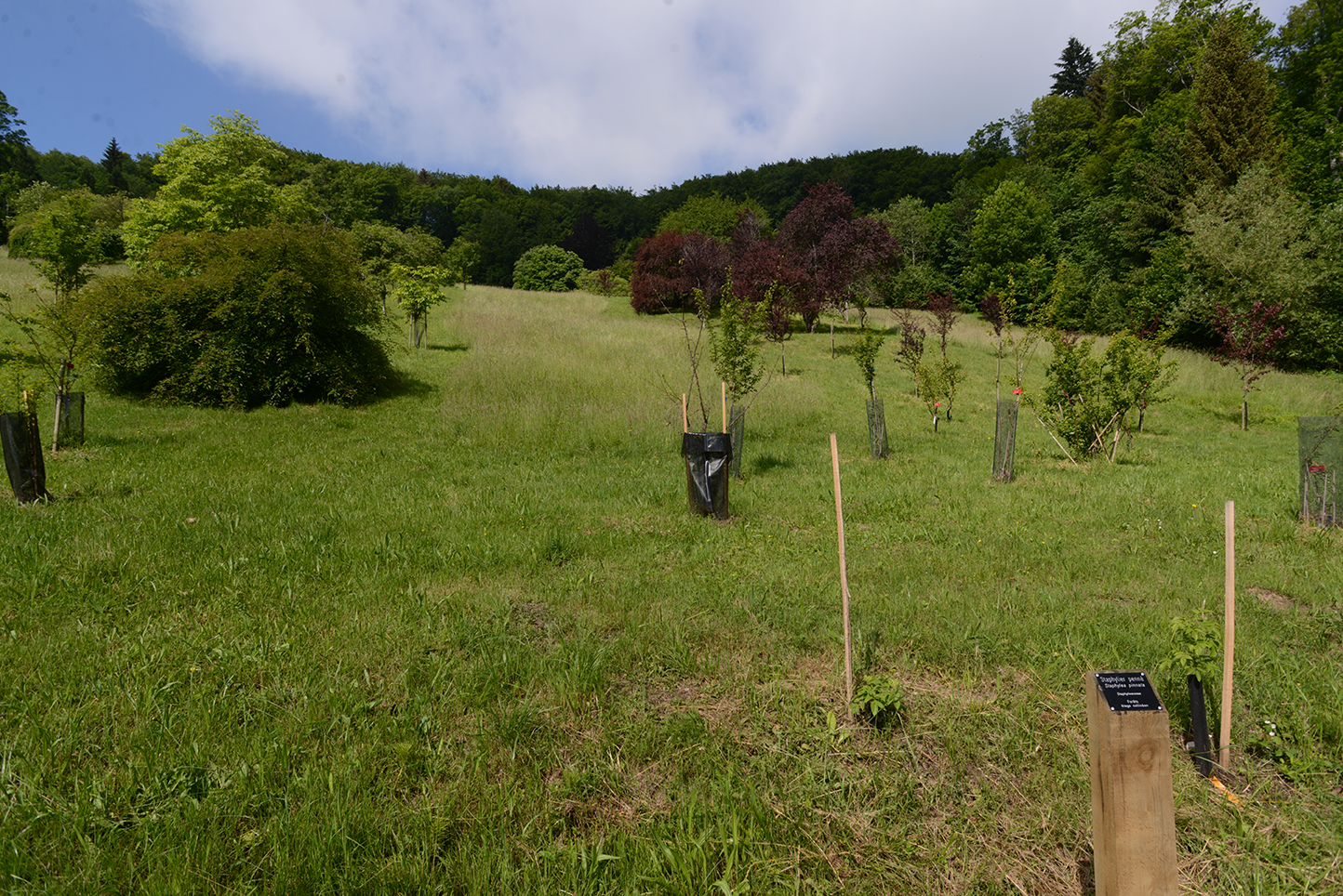 Certes, ça grimpe, mais quelle splendeur ! Des mamelons (dixit le guide), des creux, des chemins forestiers et des petites cabanes tout le long pour se reposer. Les expositions sont diversifiées et favorables à l’introduction d’un grand nombre d’espèces végétales.