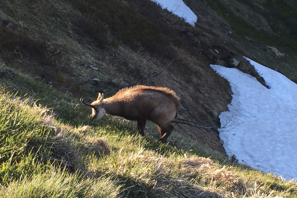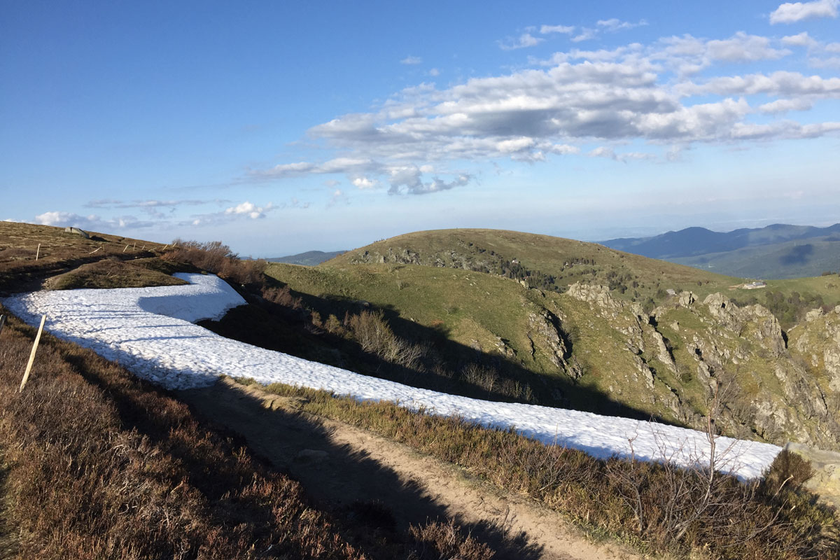 Introduits par les Allemands en 1956 (ils en offrirent 10 aux Vosgiens), les chamois se sont bien reproduits et ne craignent guère l’homme. On peut donc les observer de très près ! Un des meilleurs chemins pour cela est le GR 5. Se garer au parking de la Duchesse, longer l’ancienne frontière franco-allemande avec ses bornes sculptées et marcher tranquillement, une petite demi-heure. Rapidement, leur présence se signale par des points noirs au loin, au-dessus de la neige. Humer le bon air d’altitude (1250 mètres), observer les narcisses, les anémones blanches, les gentianes, les myrtilles… S’étonner de la marcescence du hêtre… Tout à coup, surprise, ils sont là! L’un d’eux continue même à brouter à quelques mètres malgré le bruit des voix… Magique!