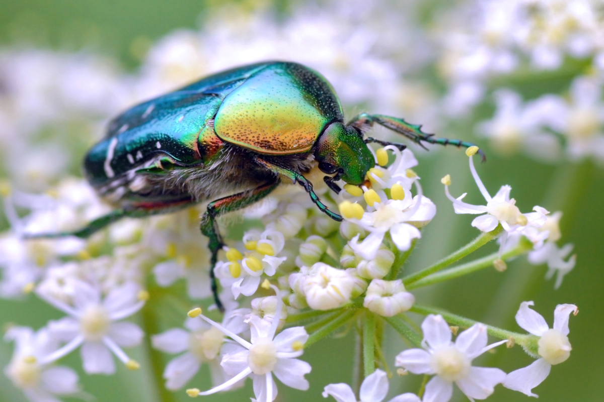 Comment ça vous ne me connaissez pas ? Allez, un petit effort… C’est moi que vous retrouvez vautré dans le cœur de vos roses, lové dans les étamines des aubépines, en extase sur les fleurs blanches de vos cornouillers gâteaux de mariée? Ah ça y est, vous me remettez ? Oui, je suis Antoinette, la cétoine dorée…