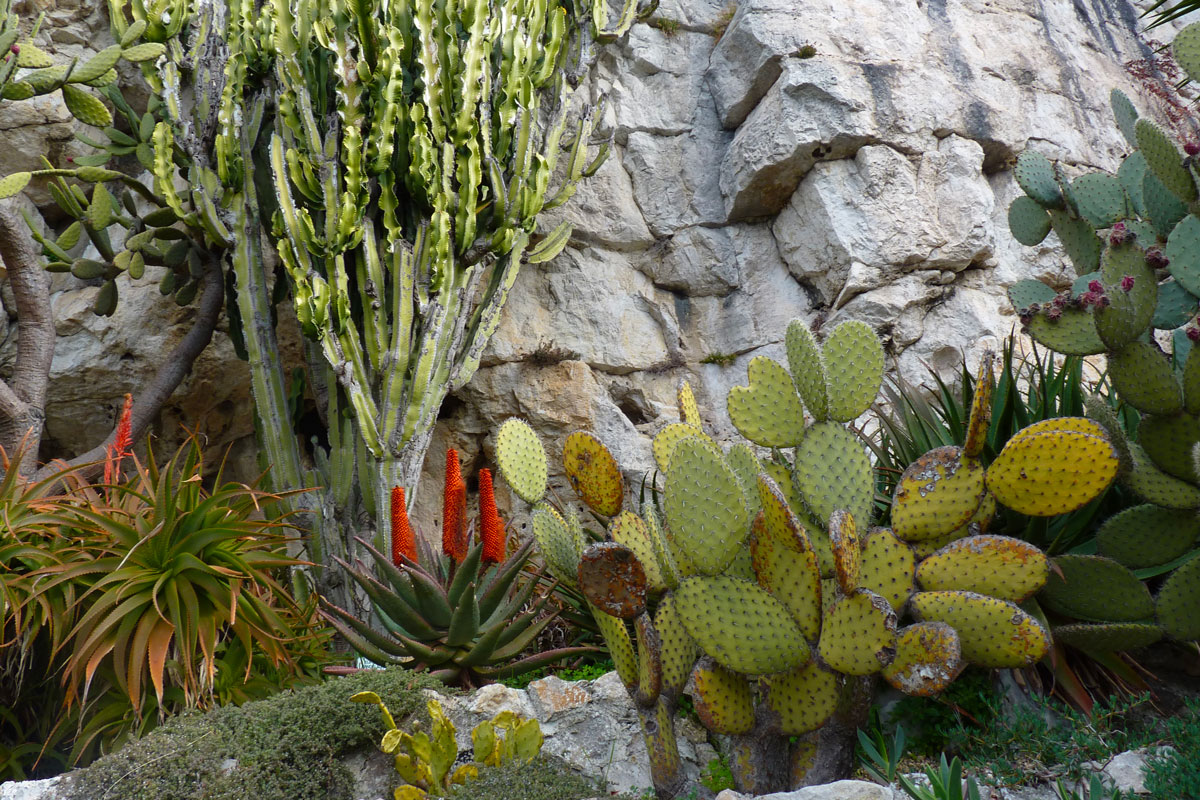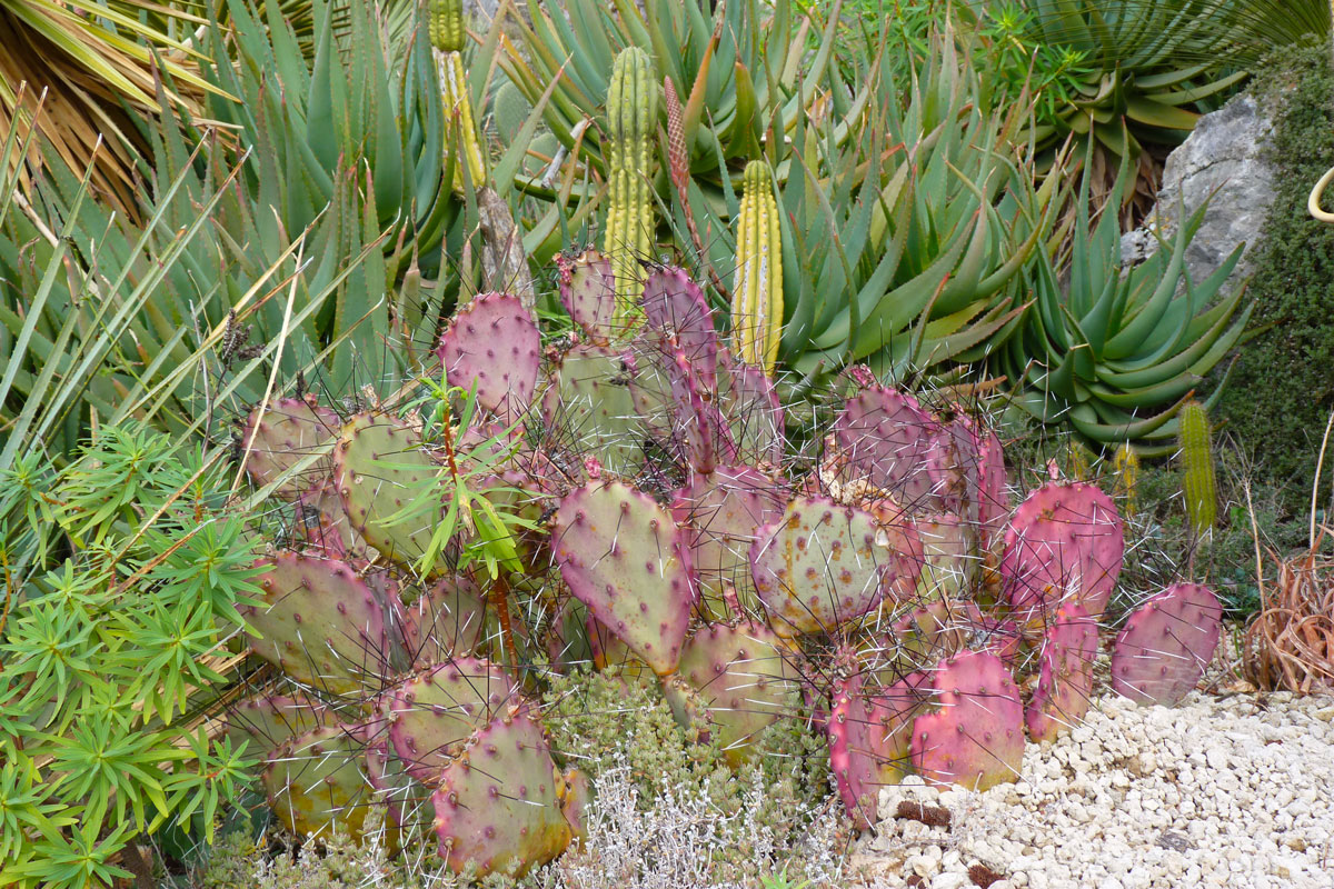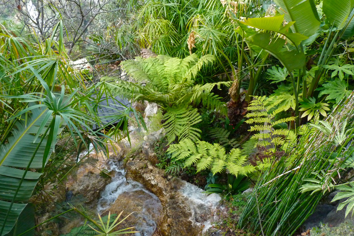 Même le jardinier a du mal à répondre ! Disons 200 à 300. Sa spécificité, c’est tout d’abord d’être construit dans des ruines médiévales, ce qui fait qu’il n’est pas linéaire du tout. Il est tout en hauteur, avec des sentiers et des petits espaces très différenciés où on peut aussi s’isoler loin du flux de visiteurs qui est important (200 000 par an). C’est aussi un jardin de découvertes. Découvertes de succulentes méconnues et aussi de certaines plantes de la partie nord comme les fougères arborescentes.