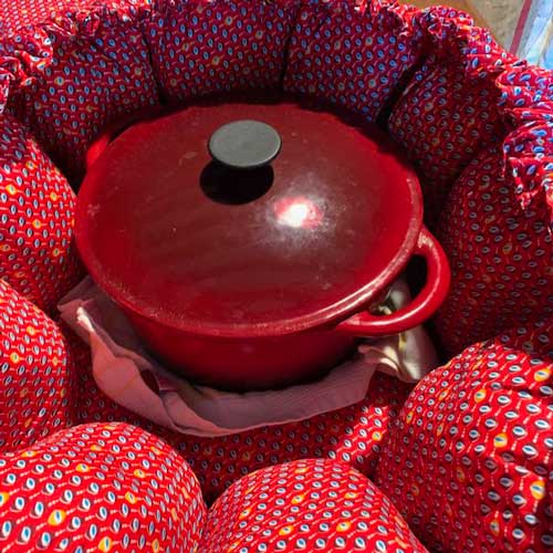 En effet, ce mode de cuisson était employé dans les campagnes françaises depuis des siècles. La cocotte prévue pour le repas finissait sa cuisson sous l’édredon. En Scandinavie et en Europe centrale, la paille jouait le rôle d’isolant pour cuire sans feu, et nourrir la famille au retour des champs.