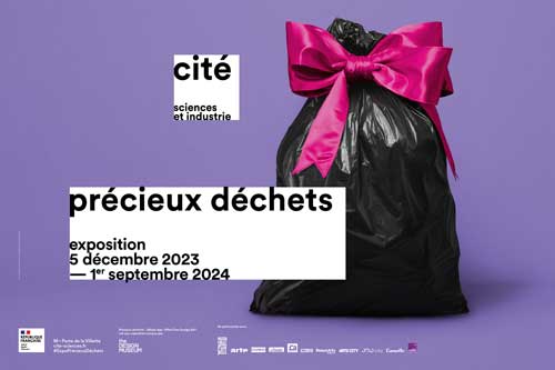 Avec l’exposition Précieux déchets, de multiples solutions de valorisation des déchets sont présentées. C’est le cas d’une jeune entreprise bretonne qui, localement, collecte et broie les déchets coquilliers. Elle a mis au point un matériau fait de 60% de coquillages recyclés et de 40% de matrice minérale. Son aspect change selon le type de coquillages. Ce nouveau matériau, riche en calcium, permet de fabriquer artisanalement, selon un processus low-tech et sans cuisson, des objets pour la cuisine et la salle de bain.