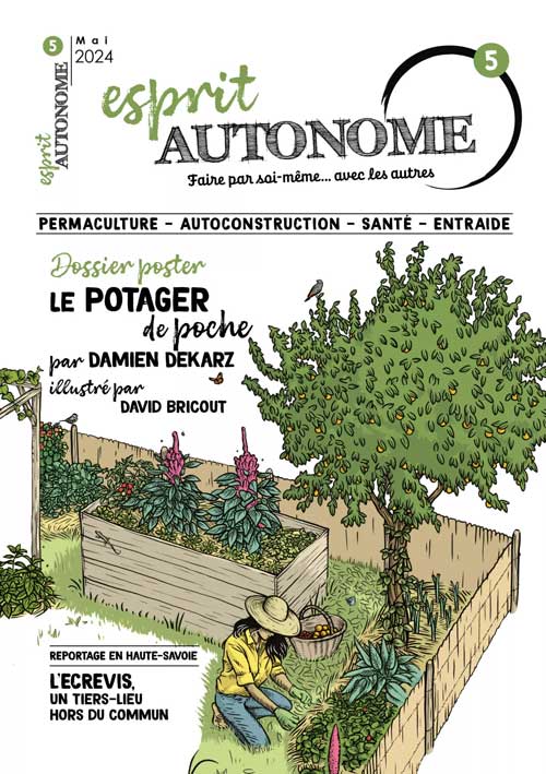 J’ai découvert récemment Esprit autonome, un journal poster, pratique, bourré d’explications et d’approches originales pour tout réaliser soi-même, en ville comme à la campagne. C’est une publication indépendante, sans pub, qui mérite qu’on prenne un abonnement pour soi ou pour offrir.