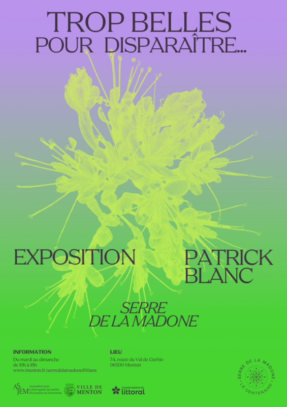 C’est le titre de l’exposition du botaniste Patrick Blanc. Elle ouvre ses portes aujourd’hui et sera visible jusqu’au 31 octobre prochain dans le superbe cadre de la Serre de la Madone, à Menton. L’expo, réalisée en collaboration avec Gilles de Paris, directeurs des jardins d’exception de Menton, nous emmène à la découverte du travail de Patrick Blanc, l’inventeur des murs végétaux. Un tour du monde en photos qui permet de marcher dans les pas du botaniste et de mettre en lumière ses découvertes, comme celle du Begonia blancii.