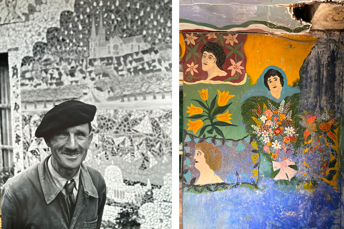 En 1929, alors qu’il est devenu balayeur du cimetière (après un certificat d’études et plusieurs petits boulots), il achète une parcelle tout près, rue du Repos. En un an, il y construit sa minuscule maison, sans eau courante ni commodités. Puis il décide de la décorer. Projet auquel il consacrera sa vie entière.