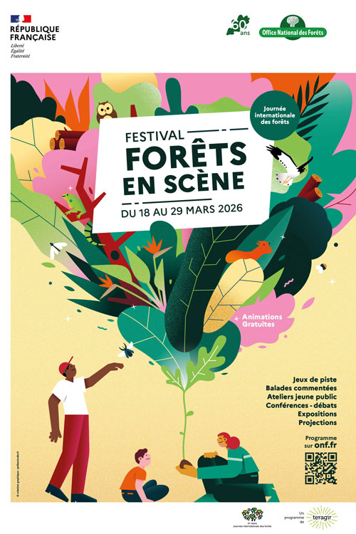 À cette occasion, l’Office national des forêts organise le festival « Forêts en Scène », un grand évènement national qui se déroulera du 18 au 29 mars 2026. Partout en France métropolitaine et en outre-mer, près de 200 évènements gratuits dédiés à la sensibilisation et à la découverte des forêts seront proposées.