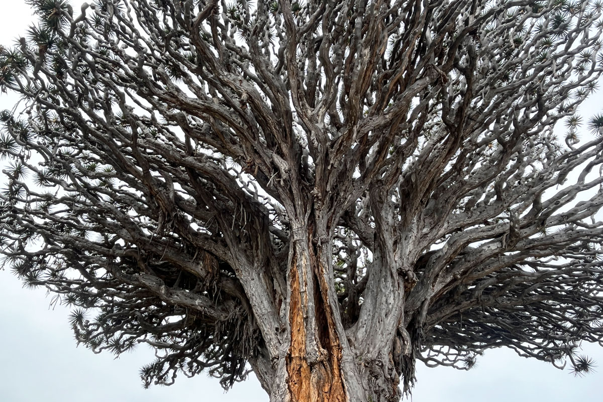 D’une croissance très lente, le Dracaena draco canariensis se ramifie seulement après des floraisons espacées de 12 à 20 ans. D’où le fait que traditionnellement, on considère ses niveaux de ramification pour connaitre son âge approximatif. Parfois, cependant, c’est l’Histoire qui l’emporte.